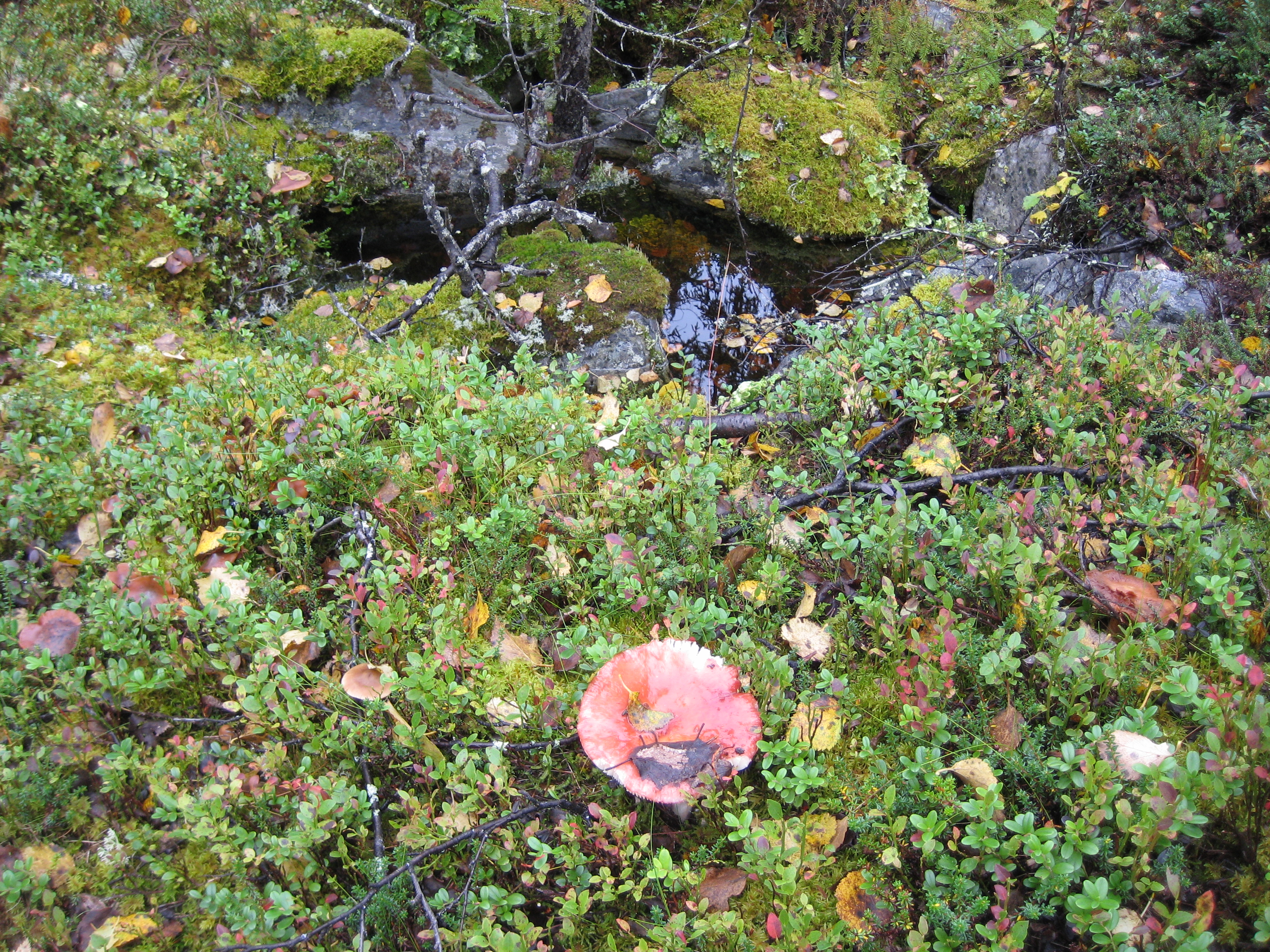 Läste på facebook om en fd. kollega som plockat 10 kg svamp. Själv har jag bara hittat dessa de har en lite röd färg med vitt i, kanske har hon redan varit där?