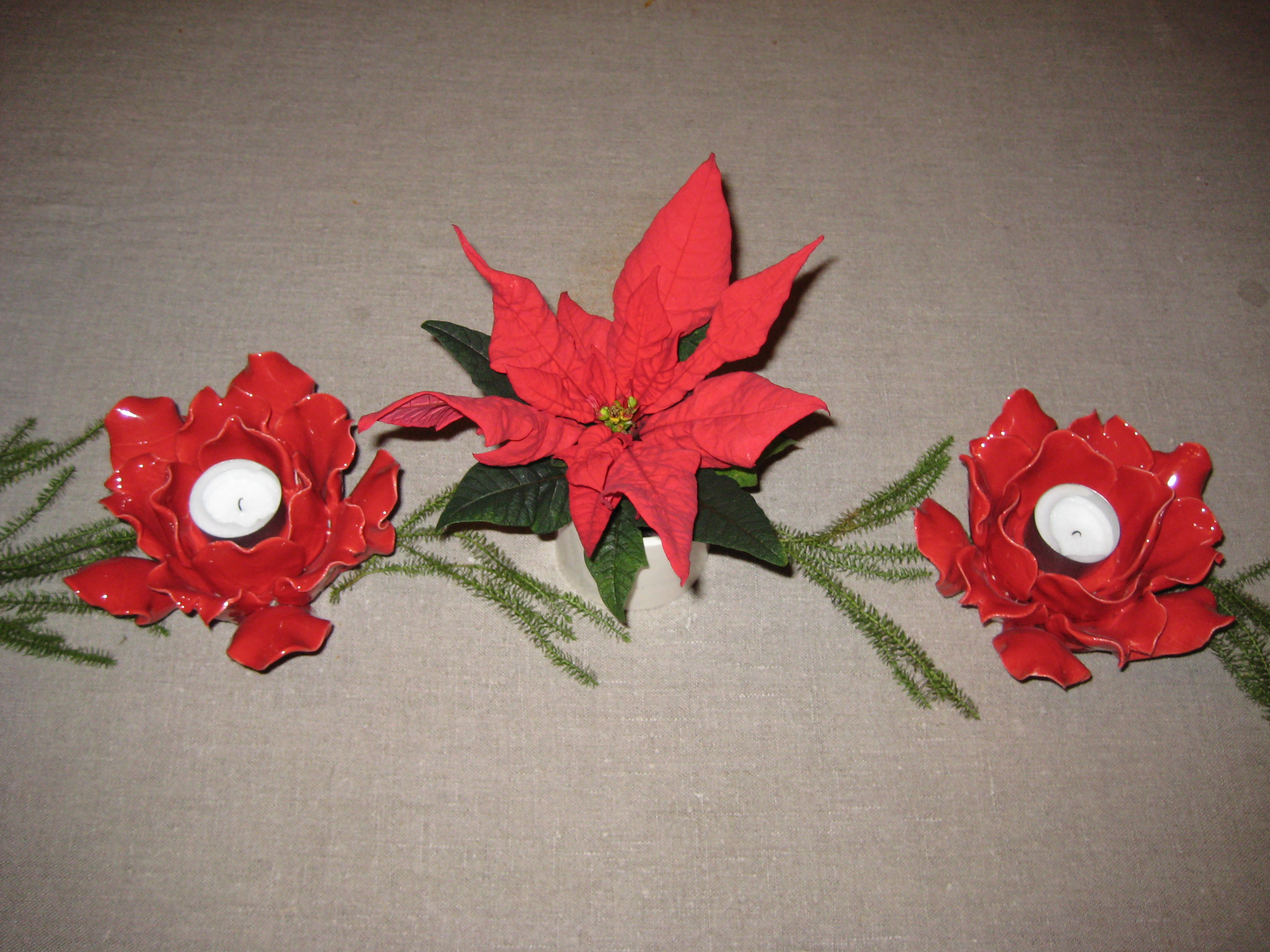 Förra årets bordsdekoration, i år blir det nog en röd duk i stället. Men nu alla läsare får ni ägna er åt pyssel och annat, så återkommer jag med ett lite längre brev i morgon. Om ni undrar, nej hunden åt inget speciellt i går. Vill bara påminna er om, att den 21 december 1118 föddes Thomas Becket, kunglig kansler och ärkebiskop av Centerbuty, ifalll ni hade glömt det.