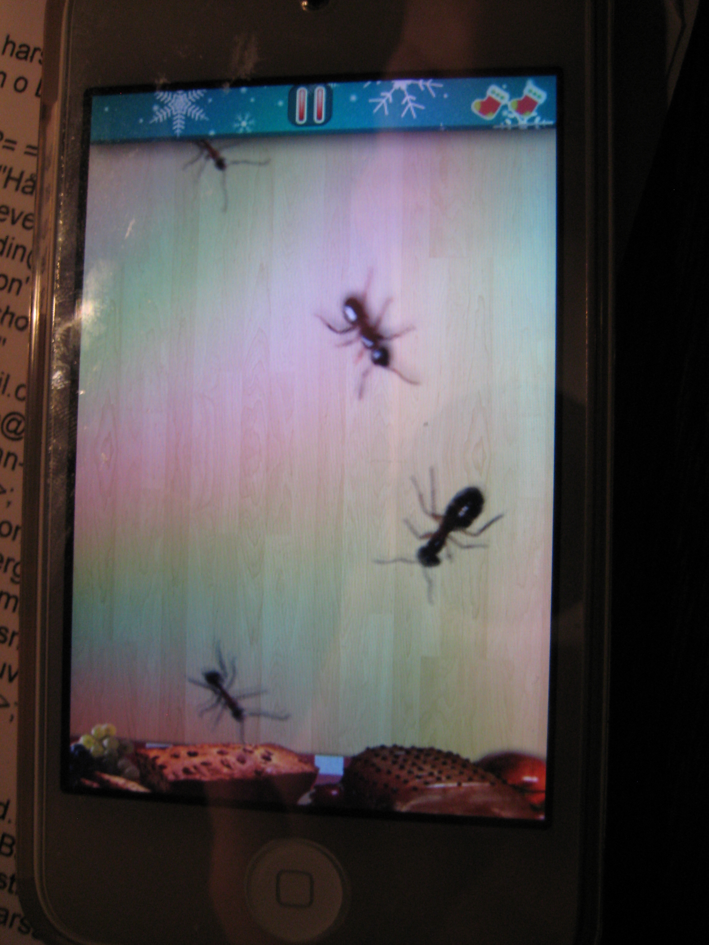 Det är inte mycket att göra utomhus, när det är så grått, så jag tävlar med Viggo på hans Ipod. Vi spelar Ant smasher och jag förlorar.