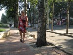 Som jag skrivit tidigare är det mycket träd på gatkanterna i Peking. På den vänstra bilden är Lotta på morgonpromenad, den högra bilden är tagen genom fönstret på taxin vi åkte när fötterna böjade ömma.