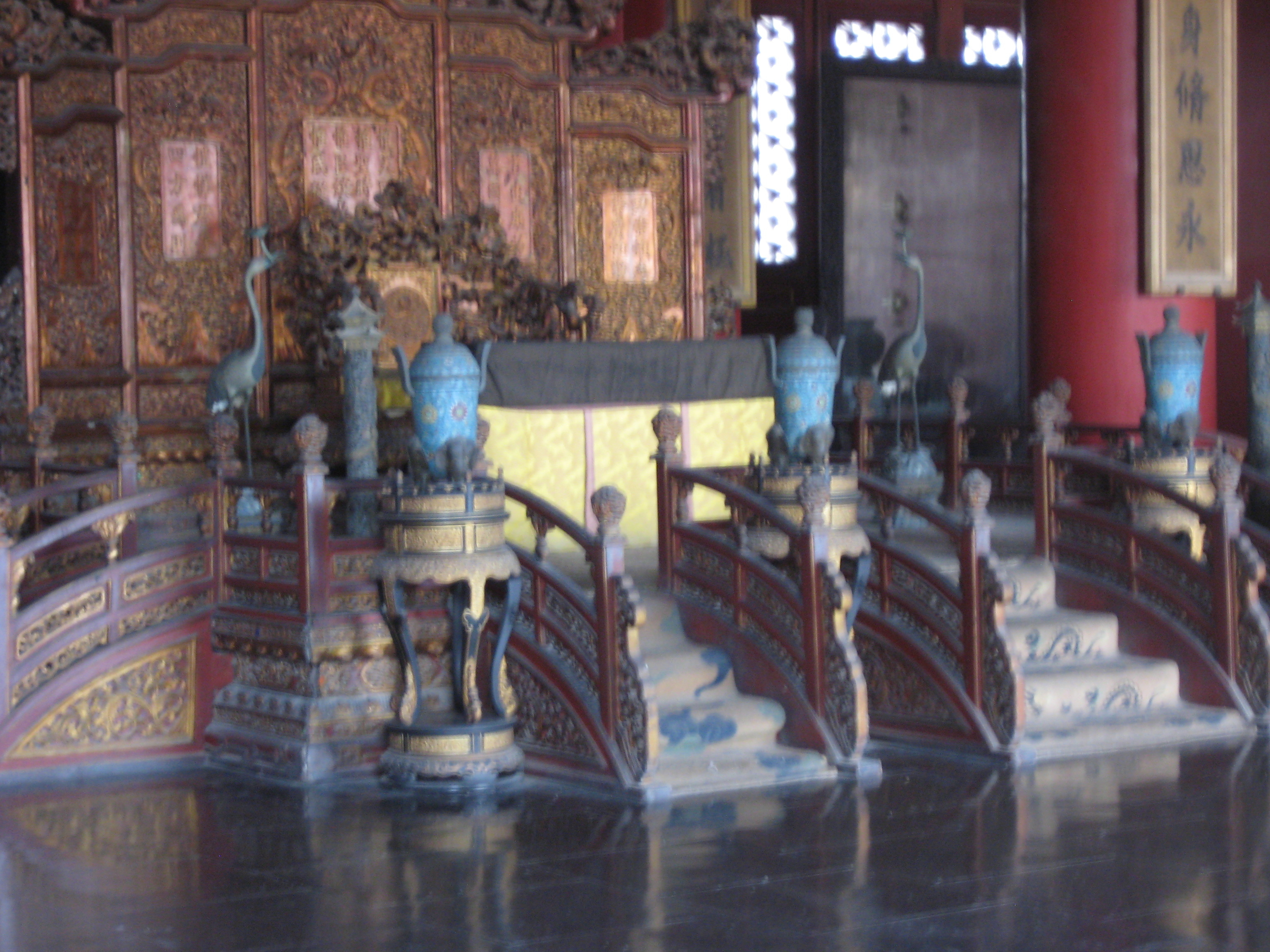 En sista titt bakåt, och man ser hur stort själva palatset är. På bilden till höger syns Påfågelstronen, i vilken kejsarinnan satt när hon tog emot sina besökare.