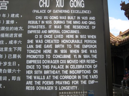 Vid kejsarinnan Ci Xis hus fanns en tavla med lite information om henne och hennes boende.