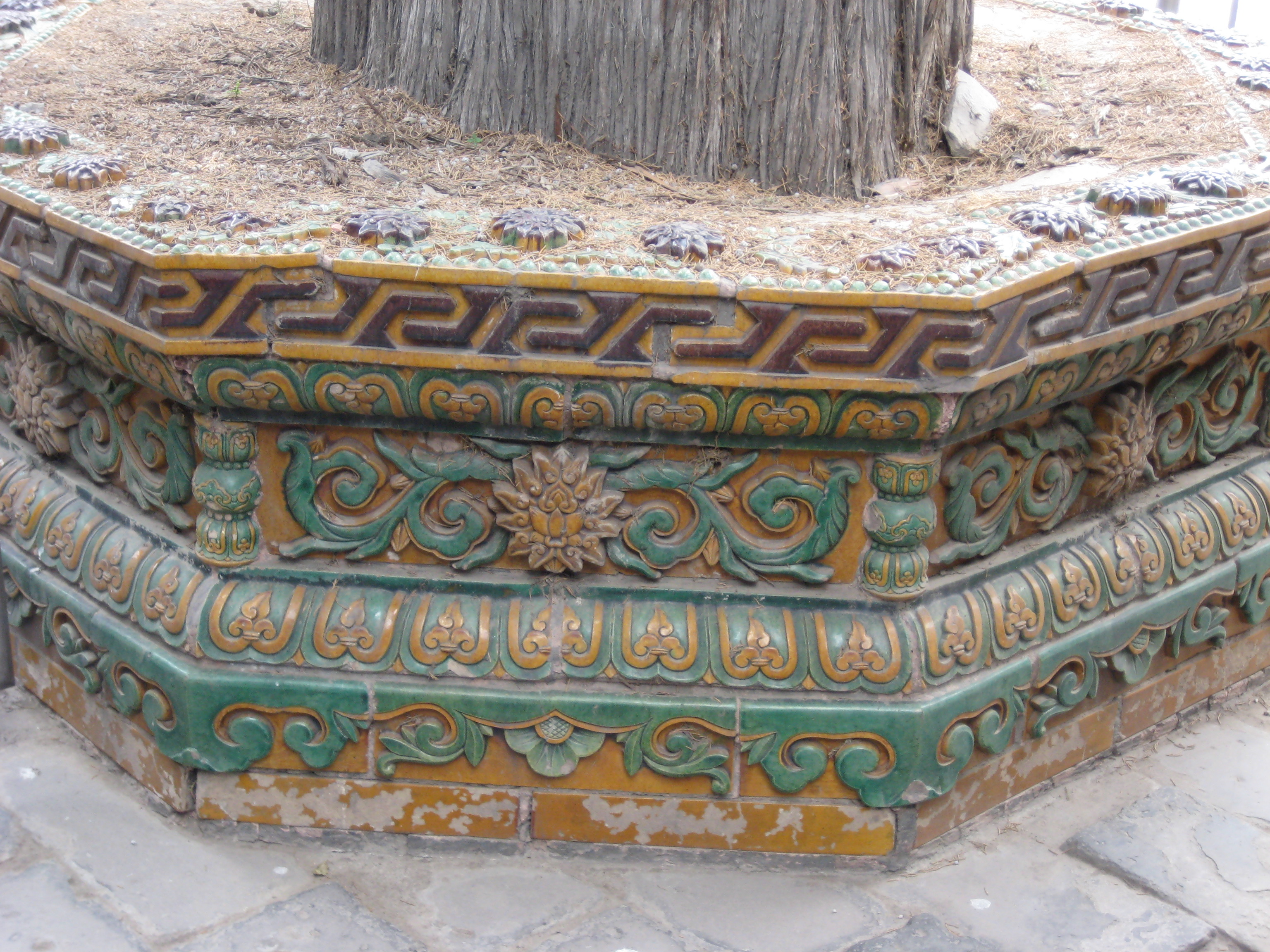 Träden var inmurade med konstfulla mosaikmönster. Inne i huset kunde man se gamla möbler och prydnadssaker. Kan tänka mig att dessa gamla pjäser kostar en del idag.