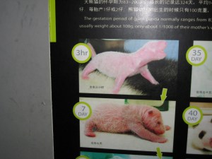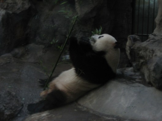 Ganska snabbt vek vi av åt vänster när vi kommit innanför grindarna, där fanns pandorna. Innan vi gick ut till djuren passerade vi ett rum med foton och texter, som beskrev pandornas liv och leverne. Man tycker det känns lite otäckt att de är utrotningshotade. Så pampiga och så gulliga.