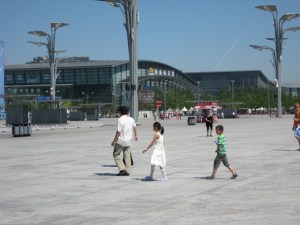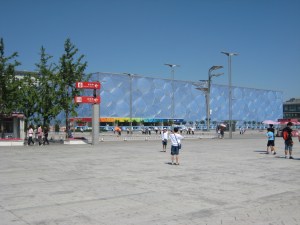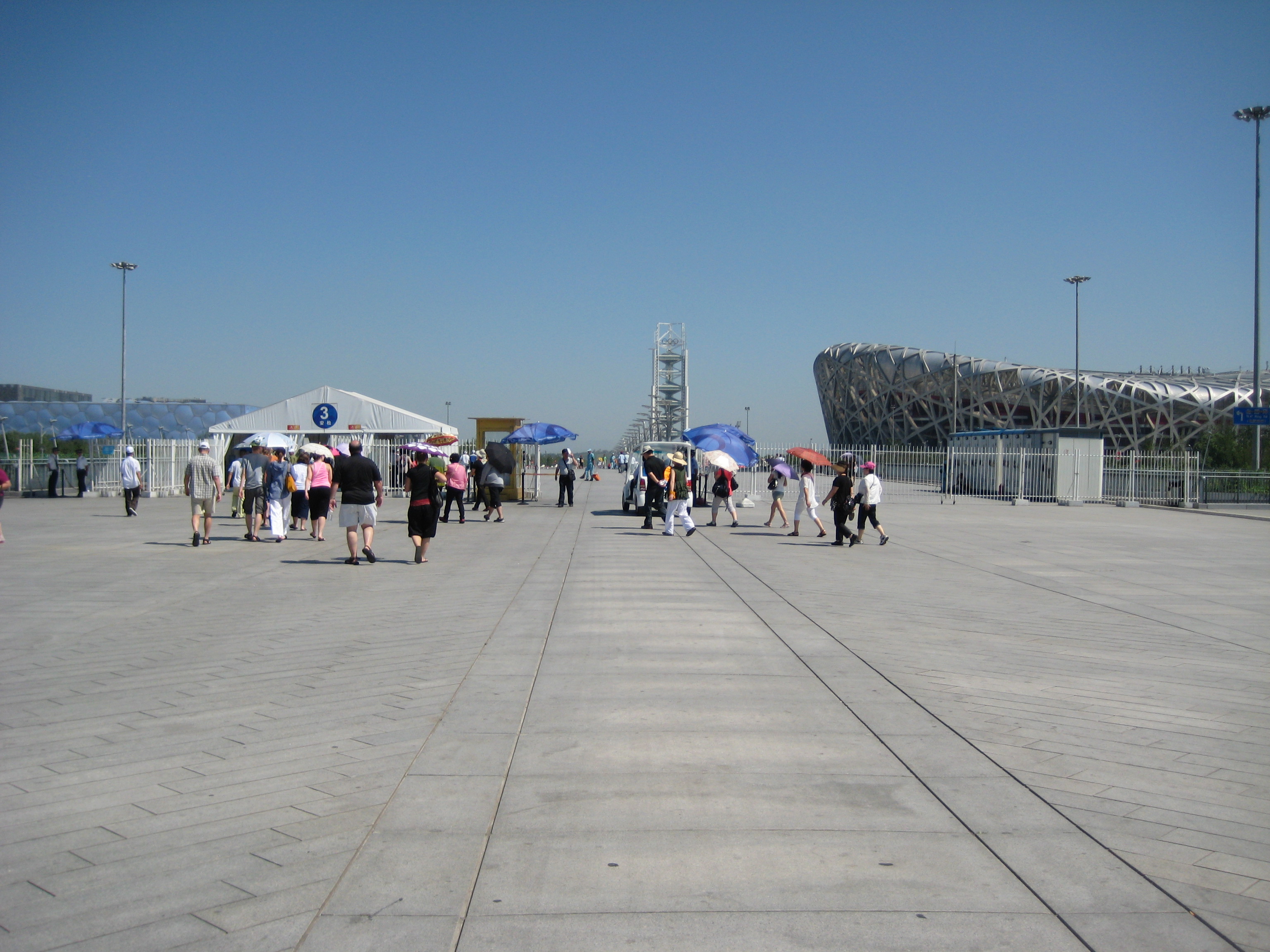 Efter besöket på ZOO, blev det ett stopp för att titta på OS-byn. Peking var ju värd för OS år 2008. Det var en upplevelse att se alla de stilrena byggnaderna, vilka såg ut som rena konstverken. På kvällarna är flera av dem belysta och skiftar i olika färger. I mitten av det hela, gick det en ”spikrak” gata som man kunde följa i många mil.