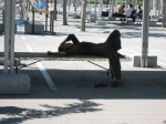 Även de övriga idrottshallarna var pampiga. Men solen värmde även denna dag och det var inte bara vi som var tvungna att ta en paus i skuggan. Denna kinesiska man fick samma tanke.