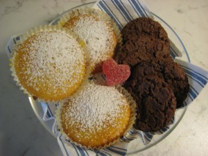 Några helt vanliga vaniljmuffins, samt en vardagskaka med smak av chokladflorsocker. Enkel även den, bakade dubbelt av båda för att kunna fylla upp frysens tomrum eftar allt julfika.