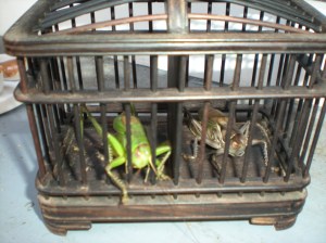 Små söta sköldspaddor och stora gräshoppor, vi kallade dem vårtbitare när jag var liten. De verkade dock inte trivas i sin bur utan gjorde riktiga utbrytningsförsök.