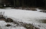 Gårdagens bild på de vackert gula krokusarna, andades vår och värme. Bilden till höger tagen idag är mörk, dyster och kylig. Detta fenomen av växling i naturen kallas för, april.