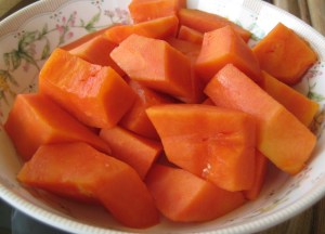 Söndag och svalt i luften, helt perfekt väder, kanske tyckte jag att det var lite kallt i poolen, runt 28 grader. En lätt lunch i form av papaya som jag fått färdigskuren av Margareta, smakade gudomligt.