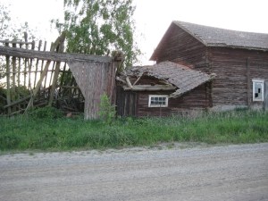 Inga åtta timmars arbetsdagar här inte, den här traktorn försvann ur bild som en oljad blixt. Det var när Rolf och jag körde en liten kvällstur på landsbygden, som jag fick tillfälle att studera lite av det arbete som ger oss vårt dagliga bröd. När jag ser riktigt gamla hus kan jag inte låta bli att drömma mig bort, för att försöka återuppliva lite av hur det var på den tiden. Man kan tänka sig hur rallarna hade det när de byggde järnvägen förbi Kiruna. Där såg jag ett gammalt, oisolerat hus som en gång fungerat som värdshus. Kallades allmänt för, Värdshuset Frys ihjäl.