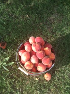 Ja nog vattnas det i munnen när man ser en sådan hink full med solmogna persikor. Nu hoppas jag bara att jag får ett bra recept som jag kan använda när vi får hit våra, förmodligen spanska persikor i augusti.