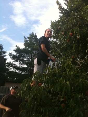 Förstår nu när jag ser bilden att skörden måste varit enorm, det är min systerdotter Lisa som har vågat sig upp på stegen.