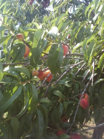 Det hänger bra många persikor på en kvist, kan tänka mig att det måste dofta ljuvligt. Trädet, ja det växer på min systers tomt i Texas.