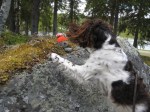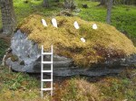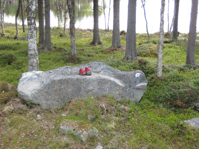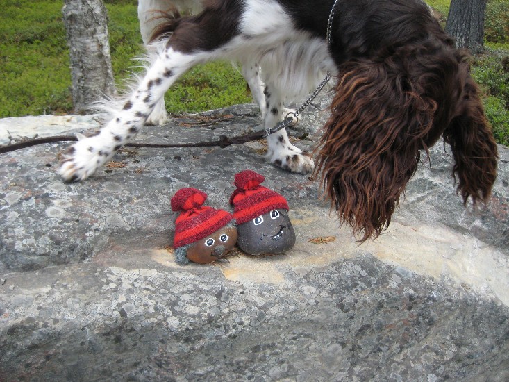 Små tomtetroll, vilka ser lite misstänkta ut om man avläser Bachus betende. Jag tror faktiskt att även han tycker det är roligt att hitta figurerna på olika stenar.