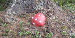 Vi fann även en flugsvamp som såg riktigt fin ut. På bilden till höger står det ett gäng små spöken, de har tydligen tagit sig upp på stenen med hjälp av stegen. Man ser dock inte deras stora runda ögon på bilden.
