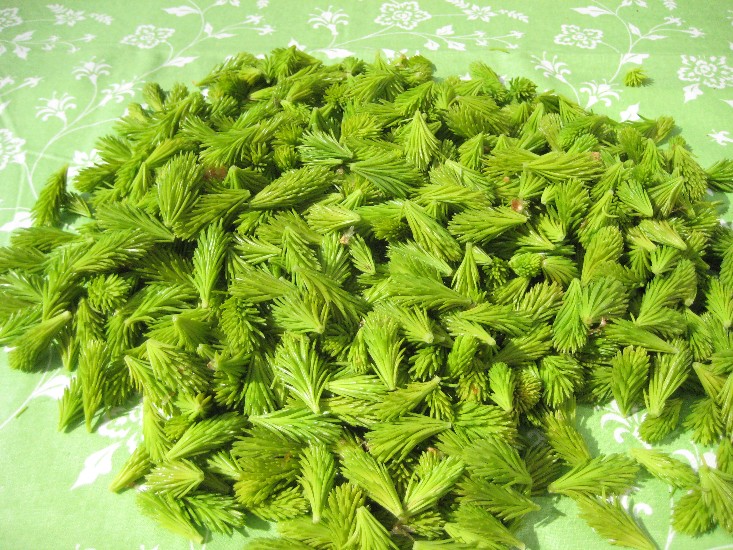 Passade på att plocka av några liter, för att göra lite granskottssirap. Det skall vara väldigt effektivt vid förkylning har jag hört. Granskotten skall vara cirka 1-3 cm stora.