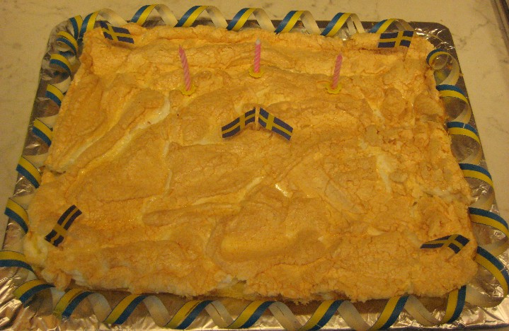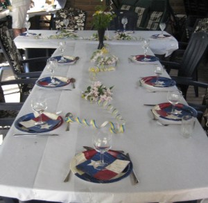 Ina dukade så fint och vi hade tur med vädret, det blev nog årets första riktiga sommardag. Om våra amerikanska släktingar läser detta, ser de att det är dom som står för en del av dukningsattiraljerna. En härlig grillmiddag stod på menyn, Petras pappa har verkligen talang för grillningens konst. Själv stod jag för lite av desserten.