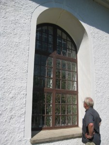 Men det som faktiskt gör kyrkan i Rolfstorp så känd, är inte själva kyrkan utan det som finns mellan två glasrutor i ett fönster.