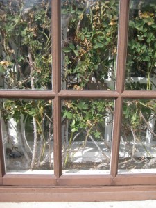 Där växer nämligen en ros, Rosa canina. Man tror att rosen har växt i detta fönster i 300 år. Den har letat sig upp mellan rutorna, som nu fungerar som växthus och varje år i maj blommar den med sina skära blommor.