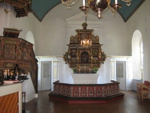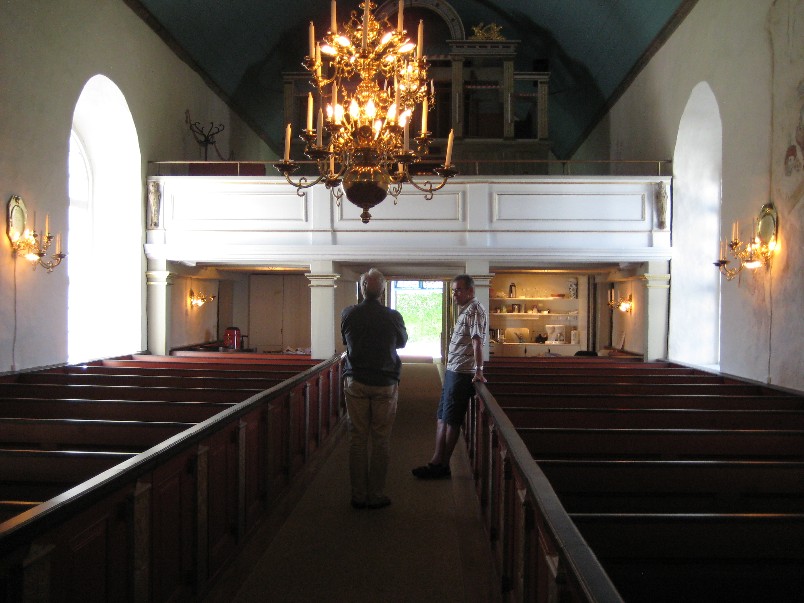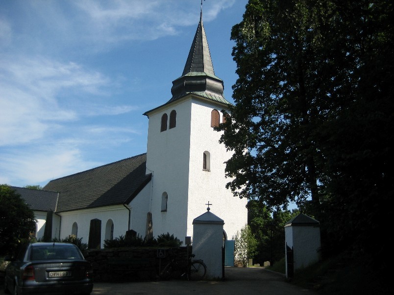 Visst är den vacker där den ligger på sin höjd och skådar ner över byn. De äldsta delarna av kyrkan är uppförda under medeltiden, kan vara runt 1200-talet. På 1700-talet byggdes det till ett klocktorn av trä, vilket ersattes av ett stentorn år 1926. Som de flesta gamla kyrkor är den rikligt utsmyckad inuti, vacker altartavla och predikstol, dessutom har man senaste året tagit fram en gammal väggmålning.