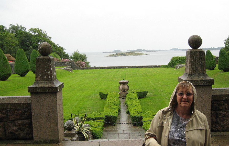 Hon anlade en park med stenlagda gångar, klippta buskar, lite av labyrint över det hela. Nere vid stranden finns badmöjligheter, när vi var där regnade det så det fanns ingen anledning att utnyttja denna möjlighet.