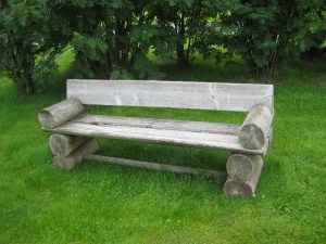 Själv har jag en dröm om vad jag skulle vilja ha för möbler i trädgården. Tänk att få sitta på den här gedigna bänken och titta ut över vår halvvilda trädgård. Den är bara så härligt gedigen och snygg. Dessvärre vet jag ingen som vill göra någon åt mig.