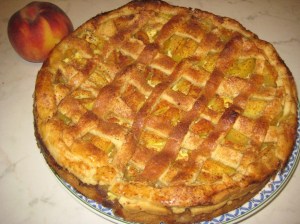 Tänkte jag skulle bjuda på persikopaj till efterrätt, fick ett recept och en bild på en vacker paj, som min systerdotter Lisa i Texas hade gjort.