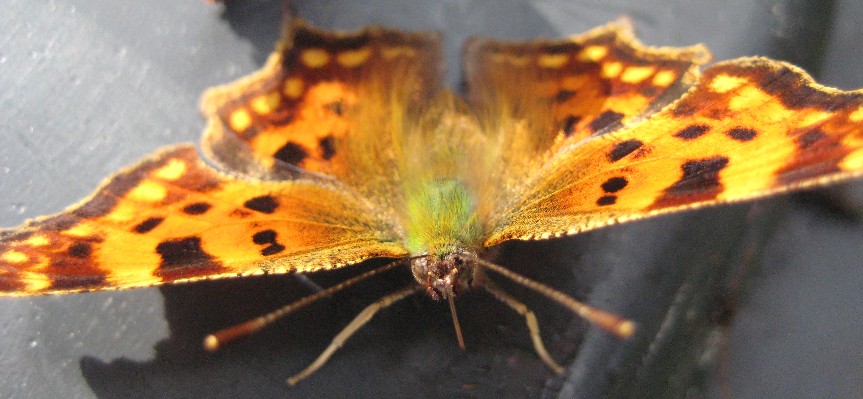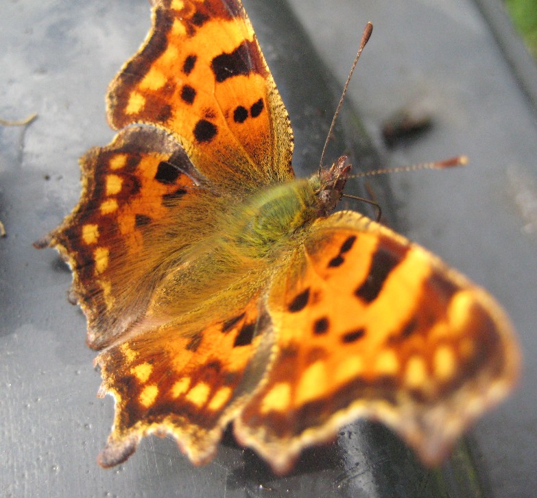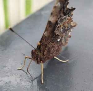 Fjäril vingad syns ganska ofta på vårt soptunnelock, ibland är de flera stycken.