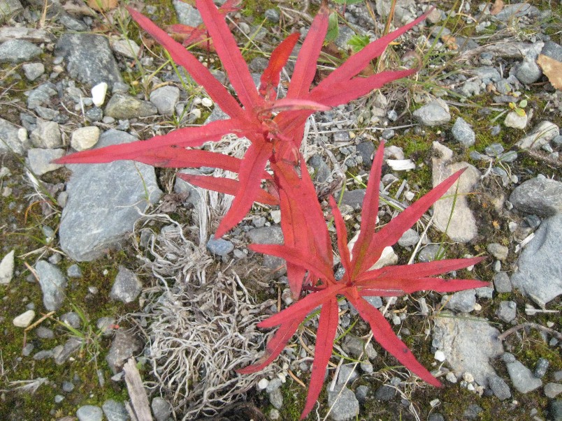 Rallarrosornas blad blir vackert mörkröda, man kan se stora fält av dem.