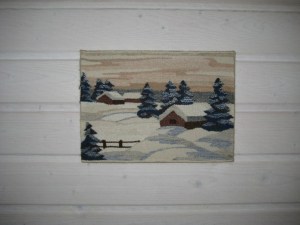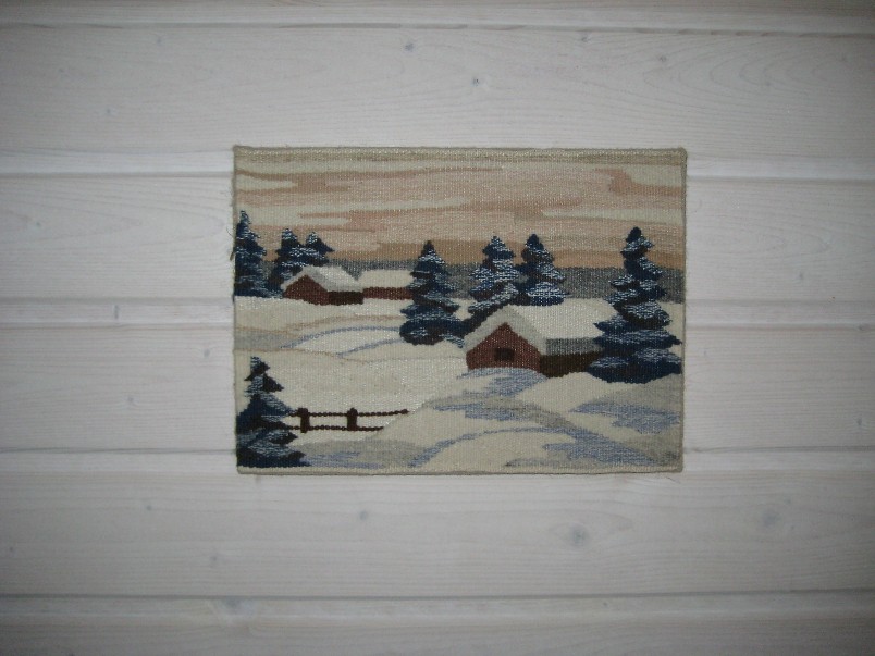 Vintermotiven kommer fram nu, nedan är en flamskvävnad jag gillar, fick den av Björns farmor Alice för 28 år sedan. En vännina till henne hade gjort den. Inte utan att man själv blir lite sugen att försöka sig på flamskvävnad, fast av enklare slag.