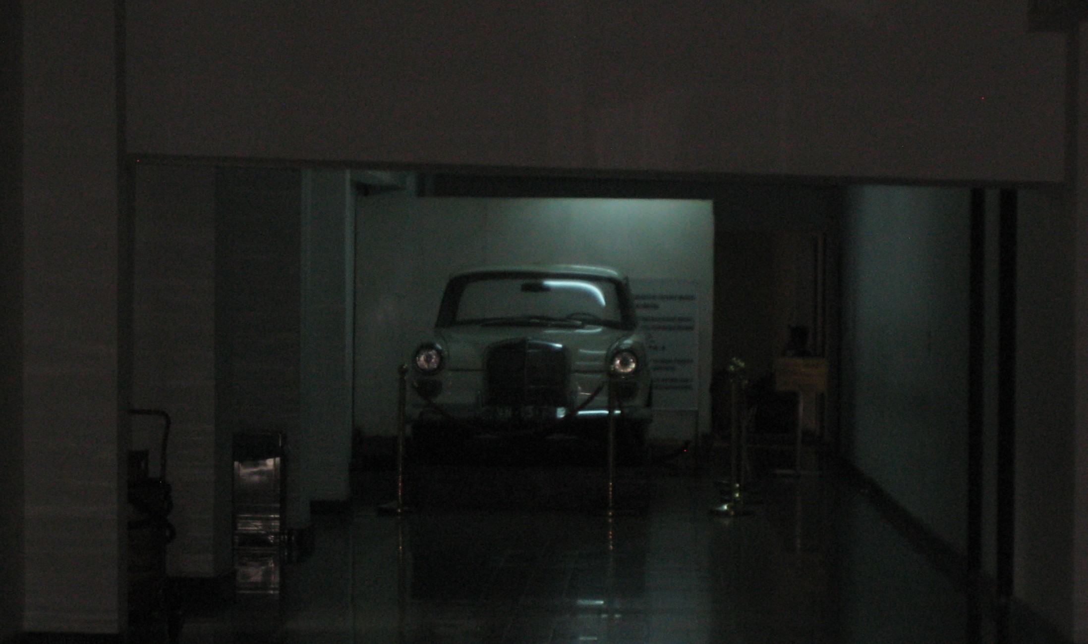 På väg ut slängde jag iväg en blick mot en hörna i källaren och fick se, ja det är faktiskt presidentens gamla bilen från 1975 som står där uppallad.