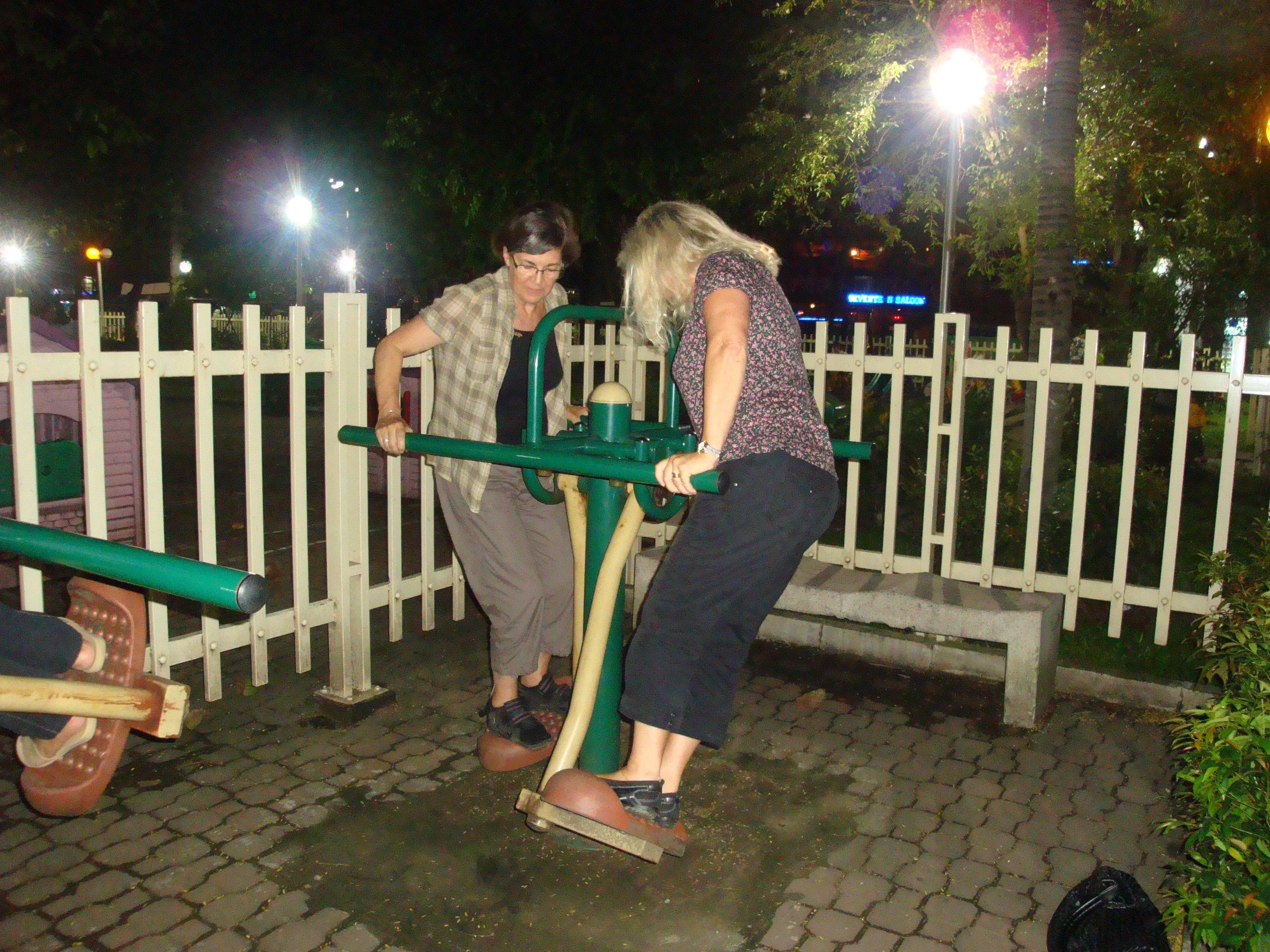 I en del parker finns det gott om redskap för såväl en person som för två. Här kunde inte Britt-Marie och Marianne låta bli att prova.