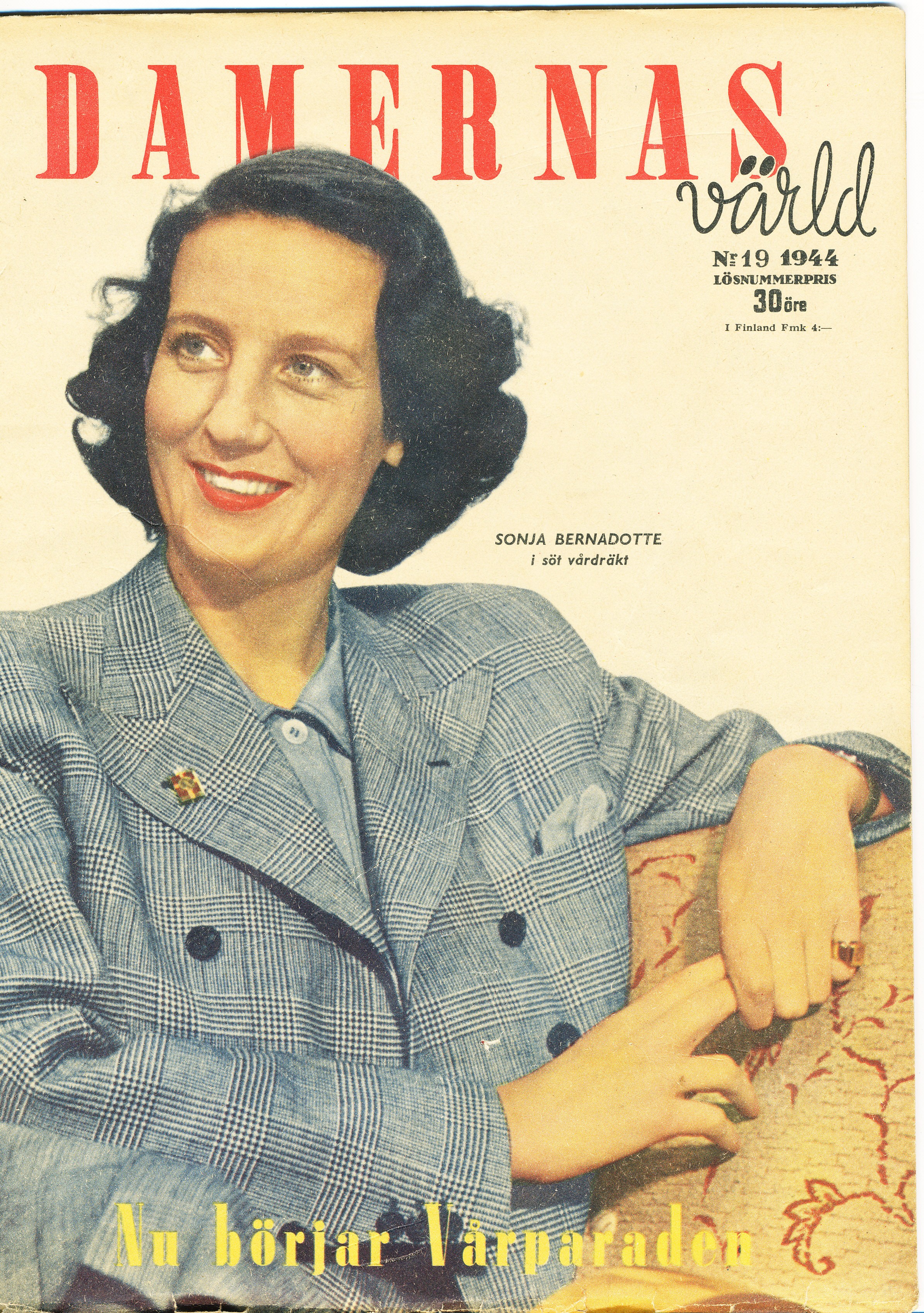 I Damernas Värld från maj 1944 hittade jag förutom presentationen av vårkläder, även en veckomatsedel. Tipsen är givna av Pernilla Turnberger, hon som skrivit bland annat Pernillas kokbok som jag tror gavs ut nån gång runt 1950.