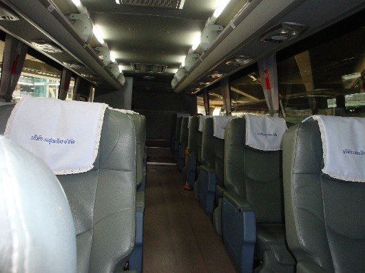 Inte så många platser, bra AC och man satt bara två plus en i rad. Det fanns även en värdinna ombord som bland annat delade ut vatten. Själva hytten till henne och chauffören var avdelad från övriga utrymmet med en glasvägg, vilket gjorde att det var väldigt tyst och behagligt att vistas där.