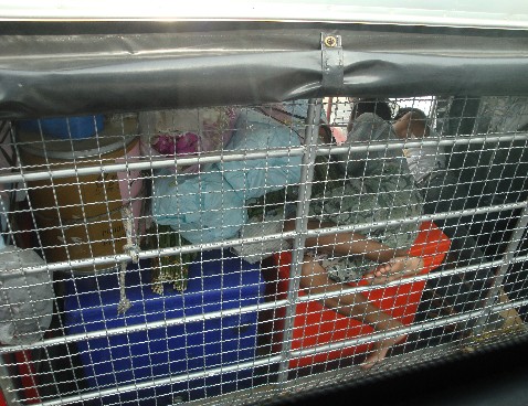 Här åker det förbi en liten lastbil med varor samt passagerare på flaket, det är inte säkerhetbälte på som gäller här. Åtminstone inte för den inhemska befolkningen.