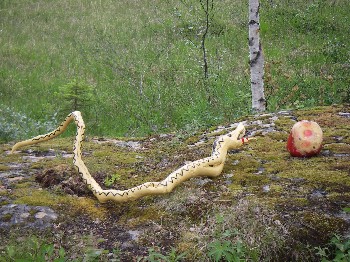 Delikatesserna lämnades dock kvar till middagen. Öringarna är Viggos förtjänst som fick med pappa och farfar på en fisketur. Hjortronsylt, hembakt tunnbröd och hembakta rullrån kom vår snälla granne fru Holmlund med. När vi nu pratar grannar, talar vi om avstånd på fyra kilometer, inte som hemma två meter från tomtgränsen. Visst är det fantastiskt att det finns personer som kommer med sådana här presenter, det glömmer man inte i första taget.