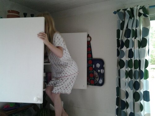 Farmors skafferi, det låter som om det vore en sådan där liten sommaraffär, där man kan köpa småprylar, kryddor, marmelad med mera. Det är dock inte det jag tänker på, utan på mitt eget skafferi. Det verkar innehålla en del intressanta saker har jag förstått. Tycker mig kunna utläsa det av barnbarnets koncentration när hon på morgonen gör sin inventering .