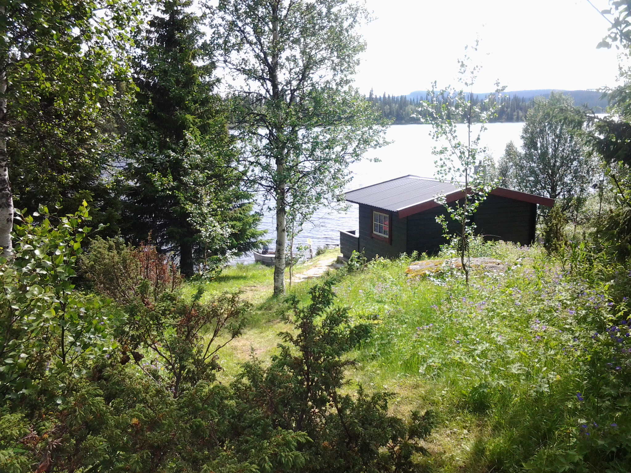 Går man backen ner kommer man till bastun och det ställe där barnbarnen gillar att bada.