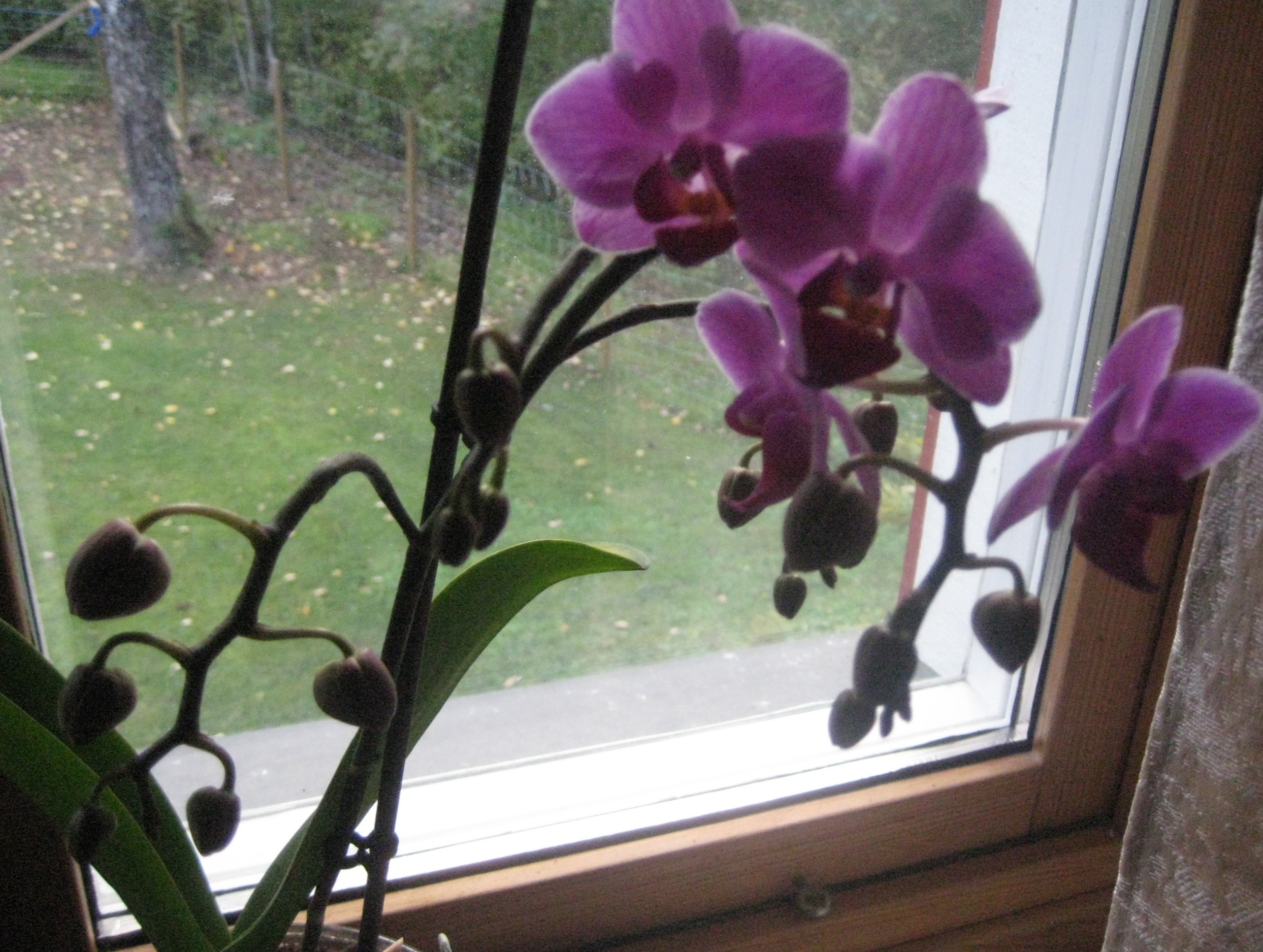 Jag pratar alltså om mina orchideér som även i år lyckades överleva sommaren utomhus. Visserligen finns det över 25 000 olika orchidétyper på vår jord, orchidéfamiljen lär vara den största växtfamilj som finns. Faktum är att det enbart i Sverige lär finnas runt ett 50-tal arter. Dessa lever vilt och är fridlysta, vilket är lika bra eftersom de ändå inte går att odla fram på våra fönsterbrädor. Efter att mina plantor har glatt oss hela vinterhalvåret med sina vackra blommor, brukar de se ganska risiga ut när jag sätter ut dem på altanen. Gulbruna blad, torra och skrumpna och utan tillstymmelse av knoppar. Där får de fira sommaren med en vattenskvätt då och då men mest lever de ett tillbakadraget och bortglömt liv.