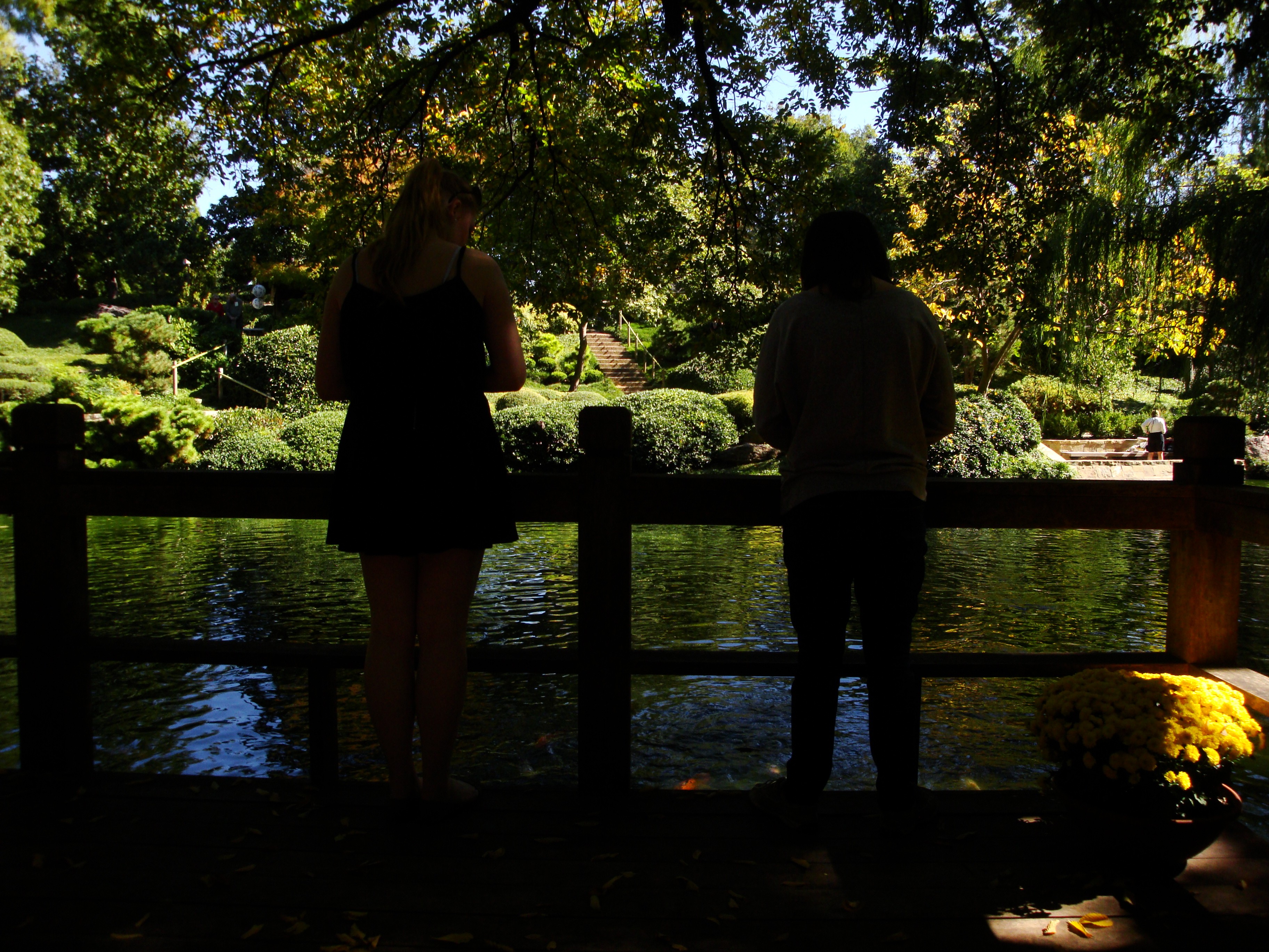 Japanska trädgårdar är inte bara vackra och smakfulla, de utstrålar även lite mystik och förtrollning. Det blev en lite trolsk bild att beskåda när Ina och hennes syssling Corinna stod och matade fiskarna från den lilla bron.