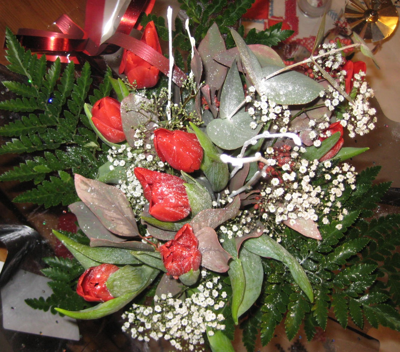 En ovanlig men rolig och vacker julblomma fick vi på förmiddagen, den kommer att glädja oss hela helgen. Tuff med sin polkagrisrandiga botten och ett tjockt lager glaskulor ovanpå det.
