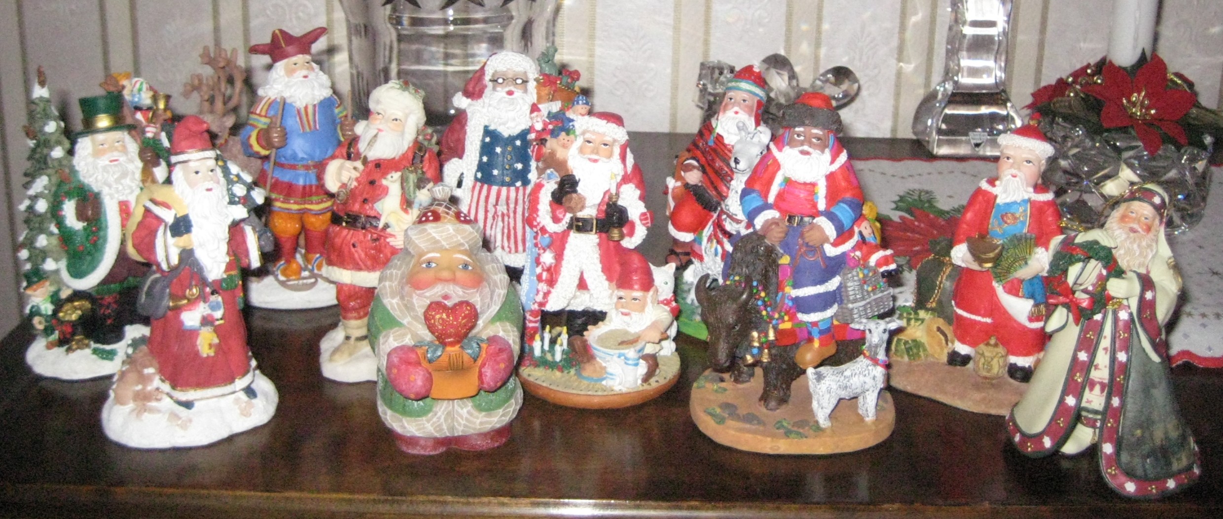 Mina amerikanska tomtar har intagit sin årliga plats, det är samlartomtar med tomteklädnad från olika länder. Jag har en misstanke om att de kommer att utökas i år .