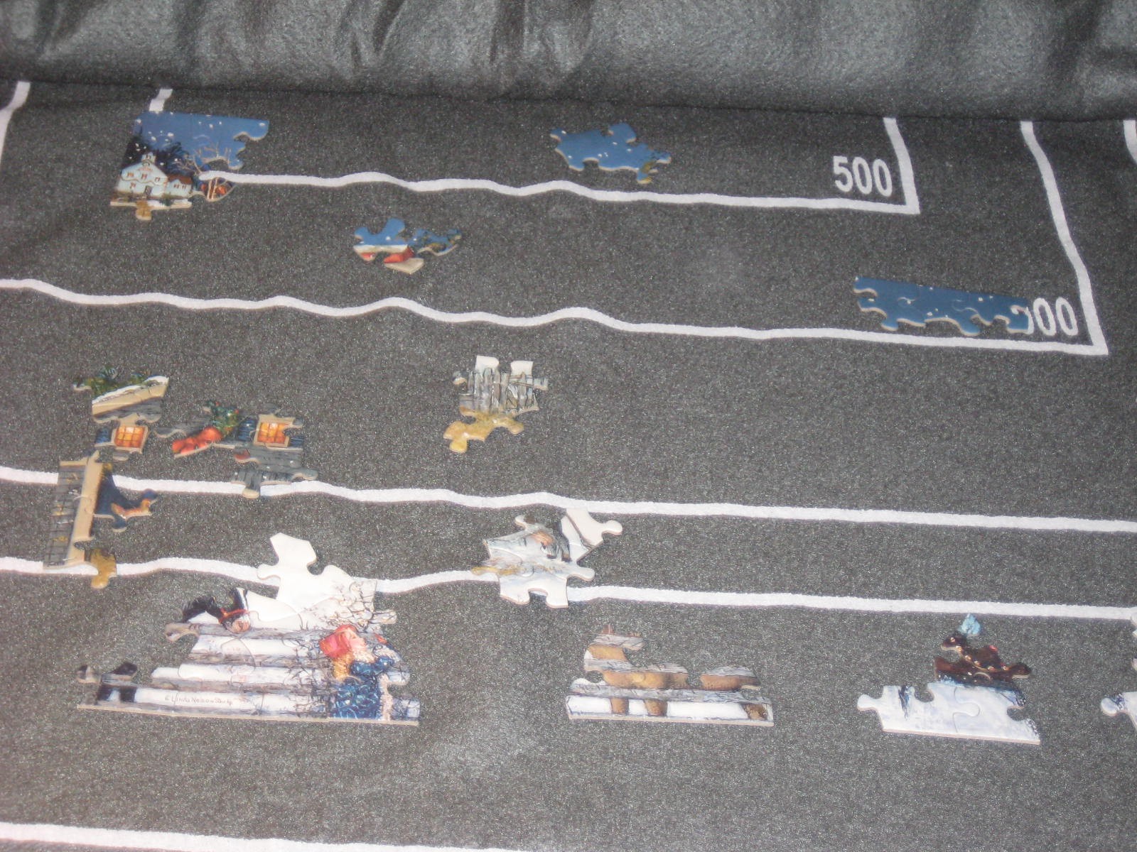 De finns i alla storlekar och dofter men just nu njuter vi av Christmas doft, lite apelsin och julkryddsdoftande. Sprider stämning vid köksbordet. Igår blev det en lugn dag och på kvällen började jag att testa det nyinköpta pusslet jag skrev om tidigare, med lite god vilja skall det nog bli klart nån regnig dag. Med den här pusselmattan som man bara kan rulla ihop med bitarna inuti om man inte vill ha det liggande framme, är det ju perfekt.