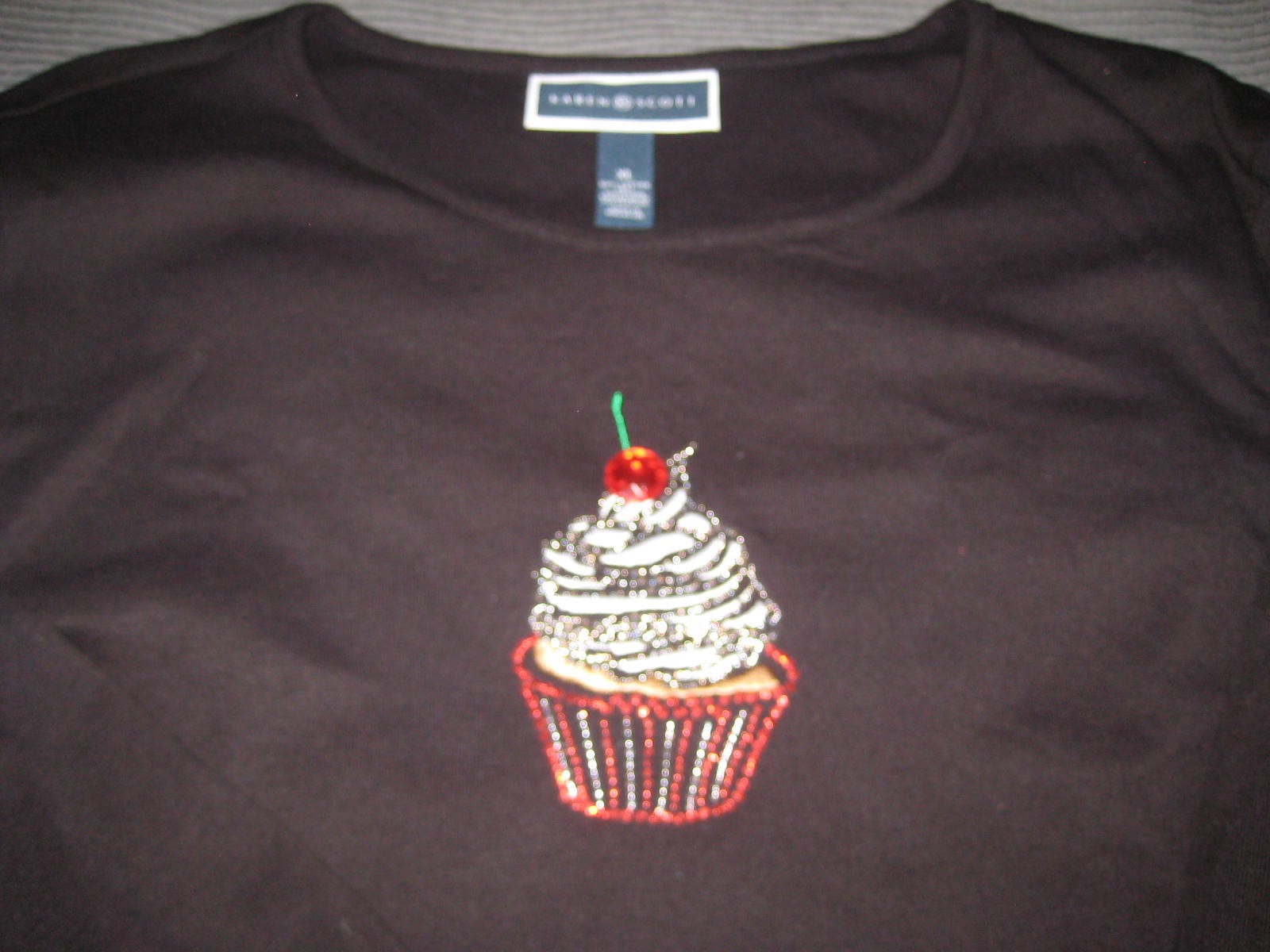 Invigde min nya Karen Scott tröja när jag var på middag häromdagen, hennes tröjor är min förtjusning vilket min syster vet. Förutom att de är sköna har de ofta något aktuellt motiv, den här gången var det Cupcake förra året var det granar. Vet inte om de finns i Sverige har i alla fall aldrig sett dem här.