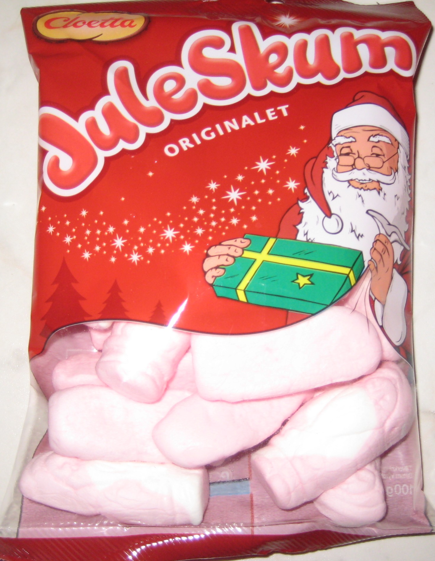 Fudge på Julskumtomtar     Man tager 20 julenisser ur en sådan här påse.