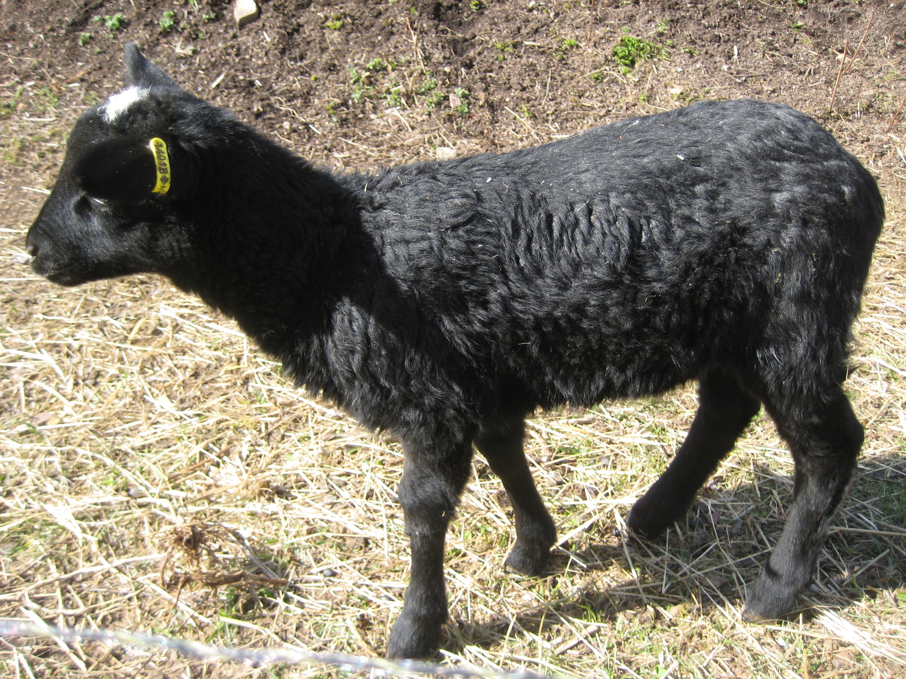 Så var det dock inte, det är en tupp av rasen Hedemoratupp. Så stolt och vacker. Det var rena 4H gården att titta runt , 12 kycklingar låg inne i värmen, två hästar i hagen och en massa små nya lamm. Finns det något näpnare än se de små följa efter sin mamma, i synnerhet när det är många små och många mammor. De här hade tjock krullig päls.