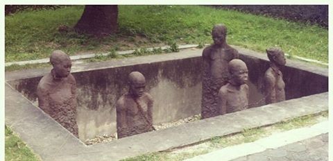 Min systerdotter som för inte så längesedan kom hem från sin tredje eller fjärde resa till Tanzania, detta beroende på att deras dotter har gått i en engelsk skola där. Hon har då passat på att besöka Zanzibar, en ö i vilken jag har förstått att hon är förtjust. Dock inte för skönheten, värmen och vattnet utan för dess historia. Jag måste säga att jag blev lite förvånad när jag såg detta kort som hon visade. I Kina finns det nedgräva soldater gjorda i lera och det är väl något de flesta känner till. Men att det fanns sådana här minnesmonumet på Zanzibar måste jag erkänna att jag inte visste.