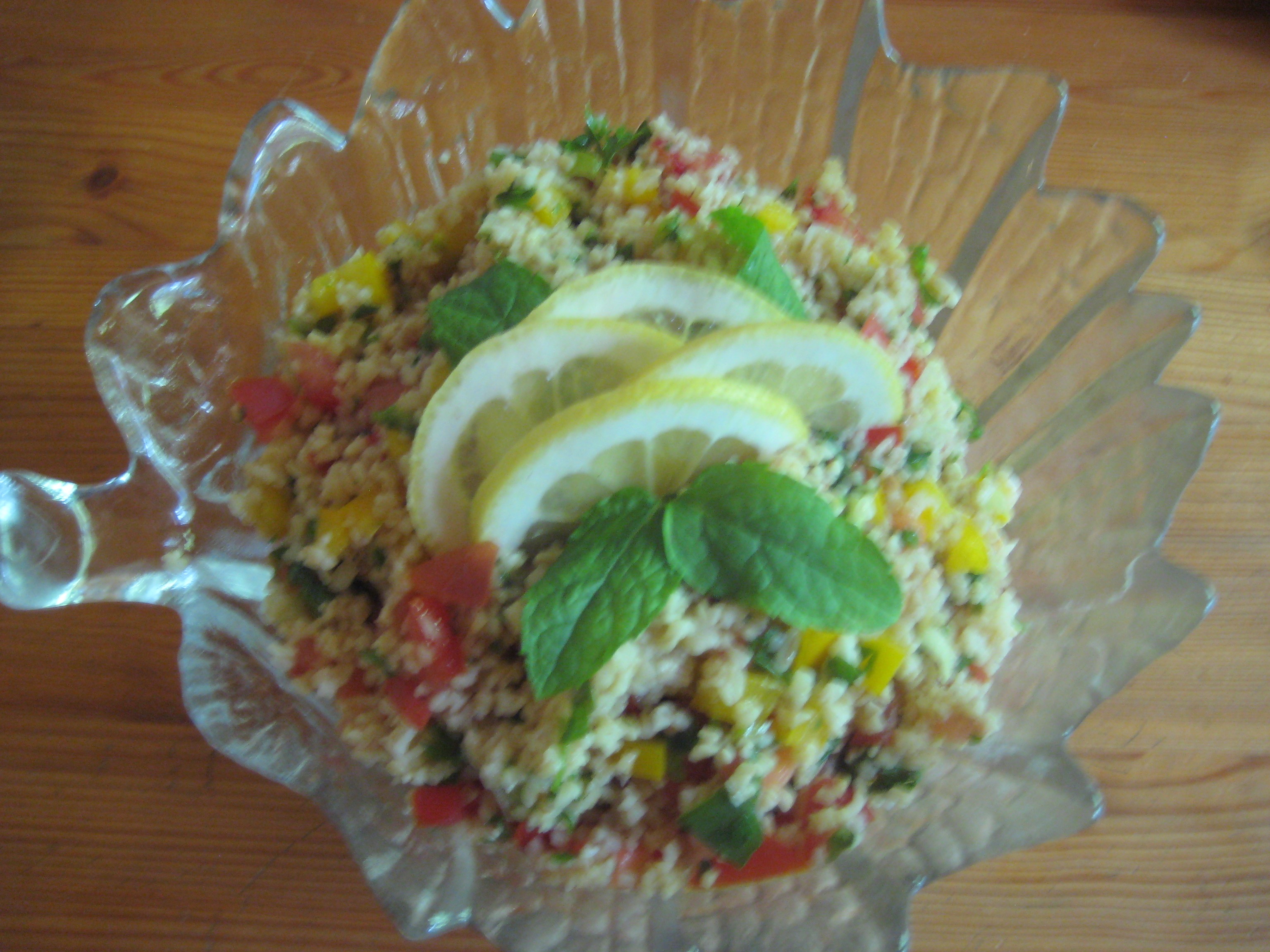 Det är saligare att giva än att taga, helt sant frågan är om det stämmer idag. Ja stämmer gör det men jag tror att många tolkar det annorlunda. Saligare att äga än att giva. Nåväl hur det än är tror jag min grannfru ändå generöst delar med sig av detta recept jag fick av henne. Hon känner sig säkert lyckligare när hon vet att flera njuter av god mat tack vare henne. Vad pratar jag då om, jo en Bulgursallad som är väldigt god och passar perfekt på ett buffébord. Med lite olika smårätter är den super, dessutom kan man skippa potatissalladen och grönsalladen. Den här ersätter båda.