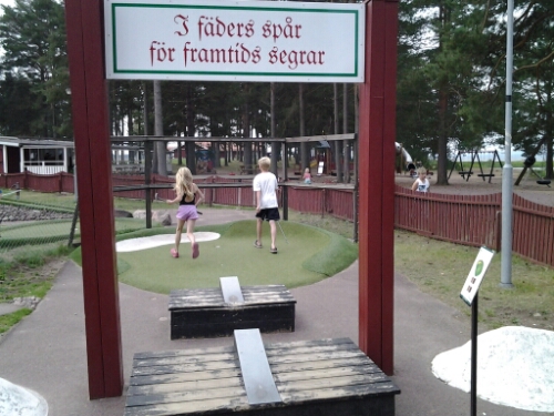Idag blev det en tur med barnbarnen Vanna och Viggo, tanken är att vi skall åka Siljan runt. Redan i Heby mötte vi röklukten från skogsbranden i Västmanland. Den följde med oss bra många mil, försvann dock när vi kom till rätt sida av dalälven. Efter ett lunchstopp på Moraklockan kom vi så småningom till Orsa. Orsa camping är en positiv upplevelse, vattnet var varmt och det är väldigt långgrunt, man kan gå och gå och gå. En minigolfrunda på eftermiddagen var ett av dagens begivenheter, jag förlorade dock. Det får bli något annat imorgon, detta är i alla fall svensk sommar när den är som bäst.